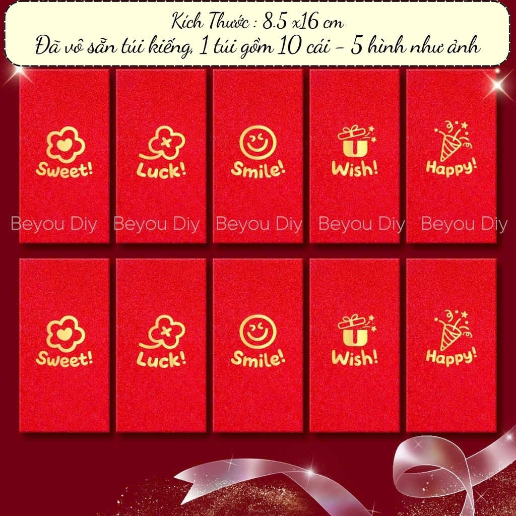 - Kích thước: 8.5 x 16 cm ( to hơn lì xì truyền thống )