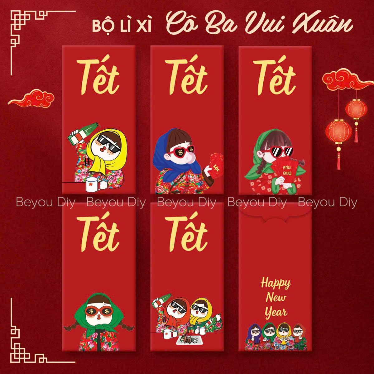 Lì xì là nét đẹp truyền thống trong dịp Tết , mang ý nghĩa chúc may mắn, bình an và khởi đầu thuận lợi cho năm mới. Bộ Lì Xì Tết "Cô Ba Vui Xuân " là dòng lì xì thiết kế hoạt hình dễ thương, tone đỏ truyền thống, phù hợp mừng tuổi gia đình và bạn bè trong dịp Tết.